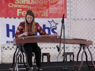 This woman played the Guzheng or Chinese harp - a plucked string instrument, similar to a zither and one of the most ancient Chinese musical instruments.