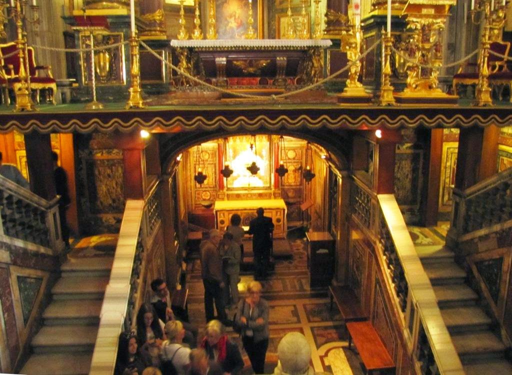 | Under the main altar is a reliquary which holds wood identified by St Helen as the wood of the crib that held Jesus in Bethlehem |